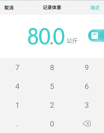 3、点完集体中之后就会出现一个体重记录框,点击右下角的×按钮删除数字,再输入当前体重,点击确定之后在软件的首页就会更新为最新的体重了。