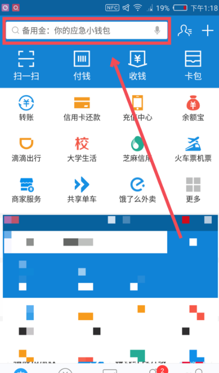 1、点击打开支付宝app,然后点击页面上面的搜索图标。