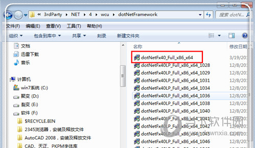 3、继续打开里面的文件夹,然后找到dotNetFx40_Full_x86_x64.exe;这个程序,如果你的 电脑是32位的,则是x32.