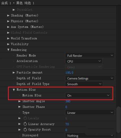 为效果更好,大家也可以在效果控件最下面,有一个渲染,更改里面的把里面的运动模糊打开效果会更好!