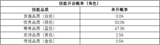 2、每种技能的获取几率相同。每个职业目前拥有一个进化技能,在拥有该技能后再次抽取到该传说品质技能,即可获得进化卷轴(用于进化技能);