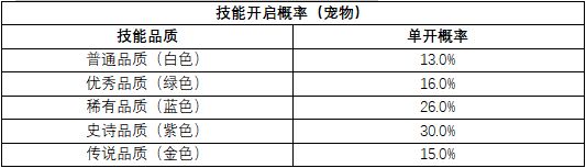 2、每种宠物技能的获取几率相同,获取几率如下所示: