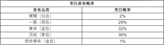 2、品质越高的美食能捕捉到高品质的宠物几率越高,获取几率如下所示: