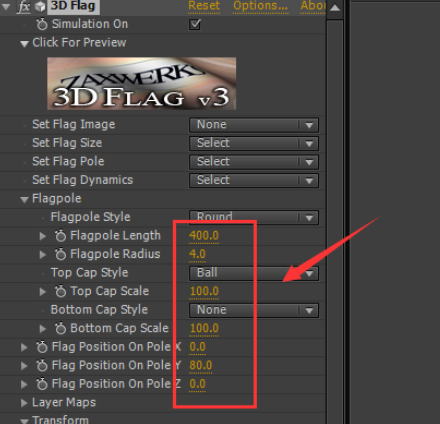 点击3D flag选项,在设置参数如图所示: