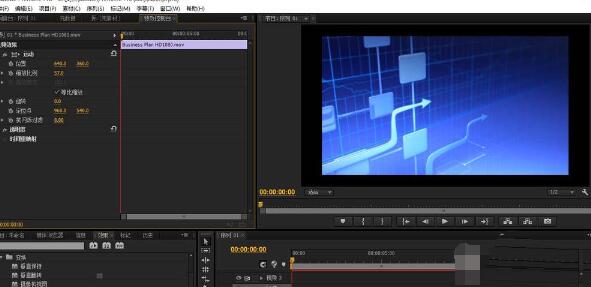 2、选中素材,点击打开“特效控制台”进行视频比例的缩小