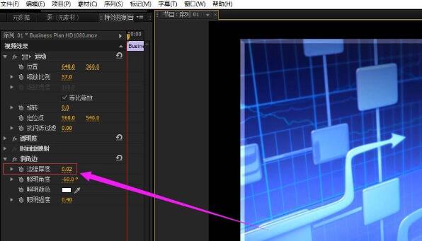 6、其实premiere里没真正意义上的描边效果,但“斜角边”的效果也差不多。