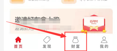 2、之后我们局可以在首页中点击选择下面的【财富】;
