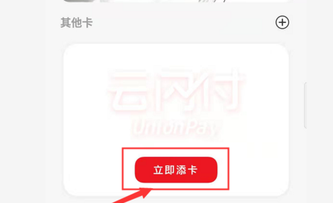 3、之后我们就可以在新页面中点击打开【立即添卡】,按照提示完成绑定储蓄卡;