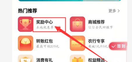 4、之后我们在首页上面点击打开【奖励中心】;