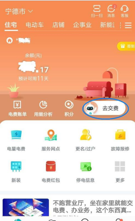 1、点击打开手机的掌上电力app,点击页面上的“去缴费”。