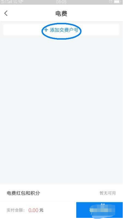 2、然后在电费页面上点击页面上的“添加交费户号”。