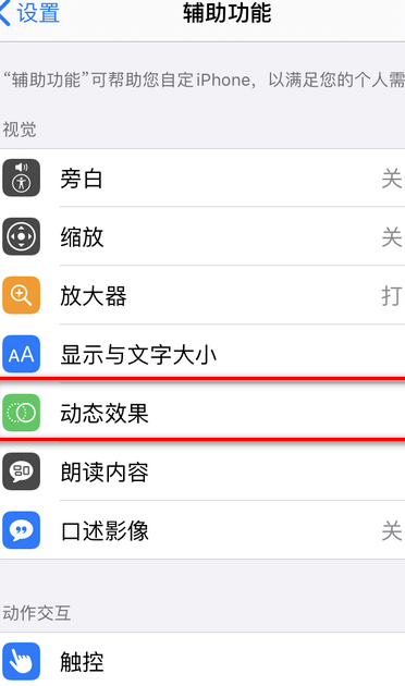 3、最后我们点击开启减弱动态效果按钮就可以了。
