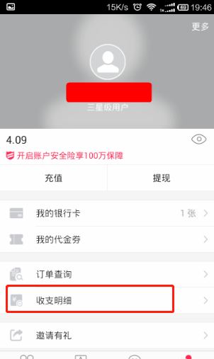 3、在个人页面上点击下面的“收支明细”,点击打开这一页面。