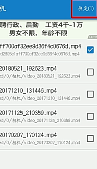 4、然后我们就可以找到要编辑的视频,选中视频之后就可以点击【确定】;