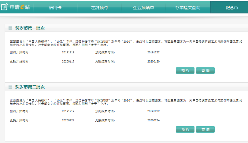 7、鼠年贺岁普通纪念币第一批次于2020年1月17日至1月20日办理预约兑换,第二批次于2月21日至2月24日办理预约兑换。
