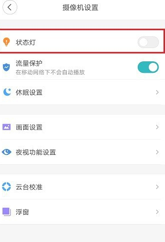5、进去摄像机设置之后,点击关闭状态灯就可以了。