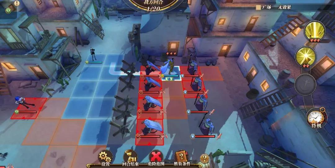 黄猿在栅栏内用光柱打三个人,回合结束,其他国王军进攻,黄猿可以直接A死。另外注意一点,国王军后面单回合还会出现,所以黄猿只能一直待在栅栏里,单回合数结束可以踢一脚附近的敌人,减轻压力。