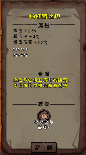 这是一把镰刀,有着独特的普攻链,普通镰刀的普攻比较难受,范围不行硬直巨大,还要强制角色位移,而帕修斯之吻这把镰刀就不一样了,提升了攻击范围而且普攻还带有控制效果。