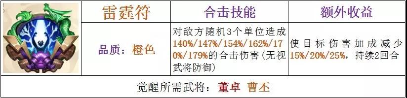 雷霆符对随机三个单位造成伤害并且限制他们输出,这是对我们收益很好的一个兵符效果,限制敌方输出等同于提升我方的抗伤率,适用于我们前中期均养的阵容。