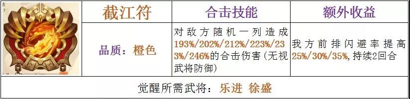 截江符,配合单个红武将可以堪比金将!适合前中期极限流的红武将进行使用。