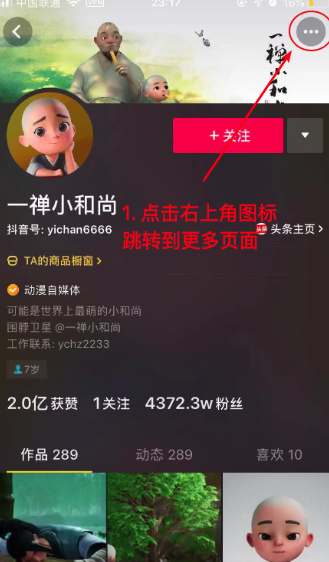 1、打开抖音账号后,在我的界面点击右上角的三个小圆点。