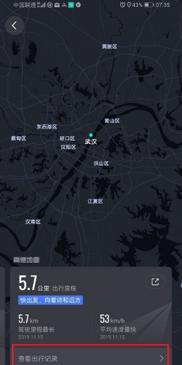 4.之后就可以看到高德地图所有的出行记录,从哪到哪,出行里程是多少等。