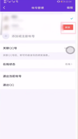 4.然后在账号管理的页面上面左划账号。