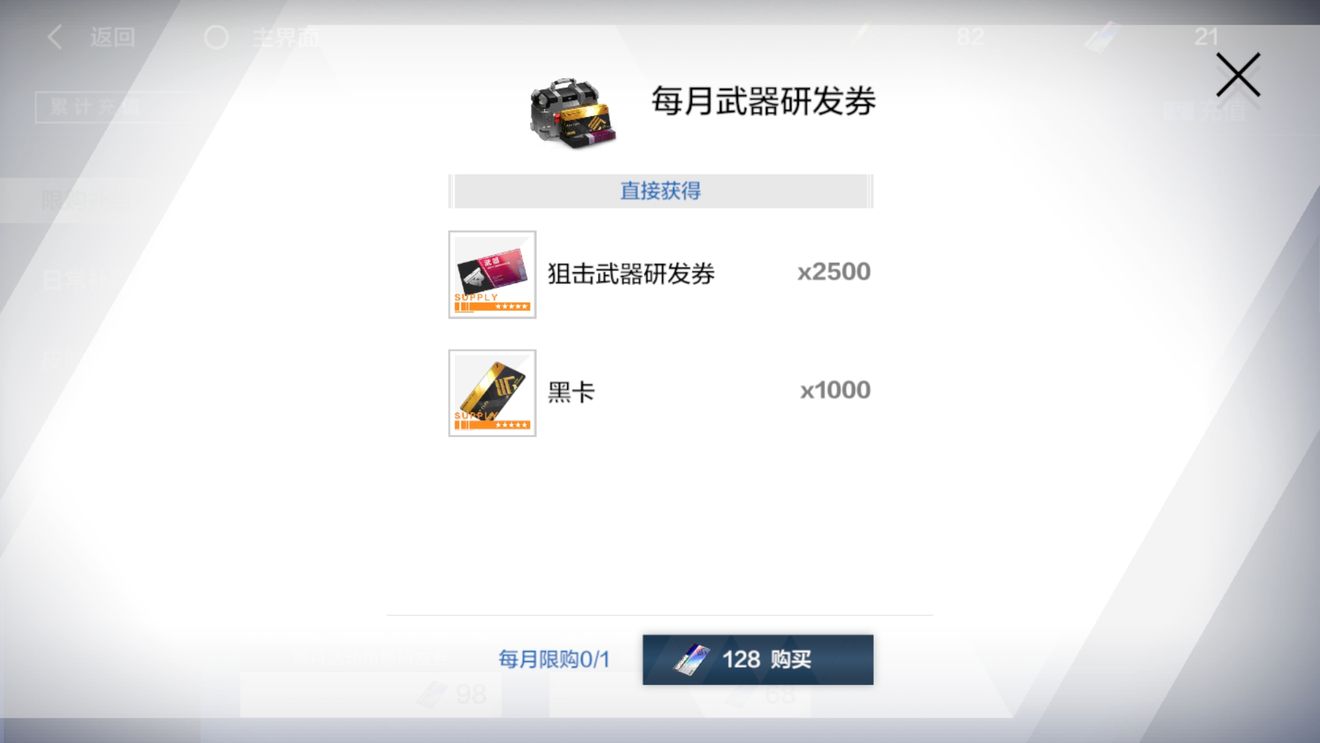 狙击武器研发券*2500,黑卡*500,年红封*3,4星武器强化素材*10