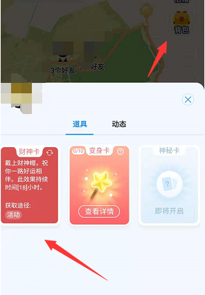 3.点击背包,先看自己有没有财神卡的,有的话我们点击使用道具。
