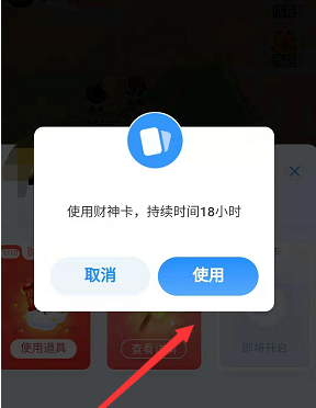 2.打开我们的道具,如果有财神卡的话那么是好办的。