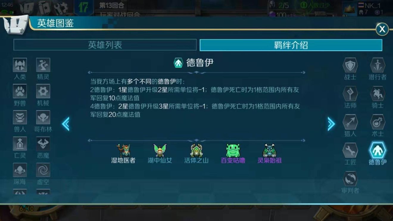 2德鲁伊:1星德鲁伊升级2星所需单位将-1;德鲁伊死亡时为1格内所有友方回复10点魔法值