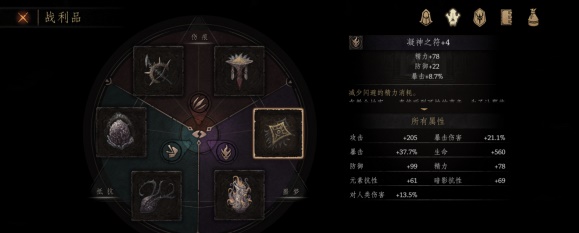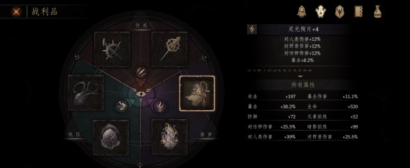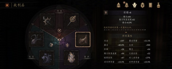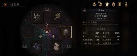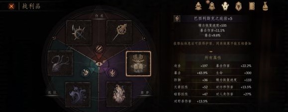 个人评价:暴击流最好的抵抗战利品,而且本身属性数值也很高,基本是所有玩家的必备。