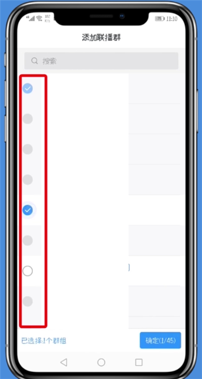 9、点击“添加联播群”,勾选更多群聊,点击“确定”即可