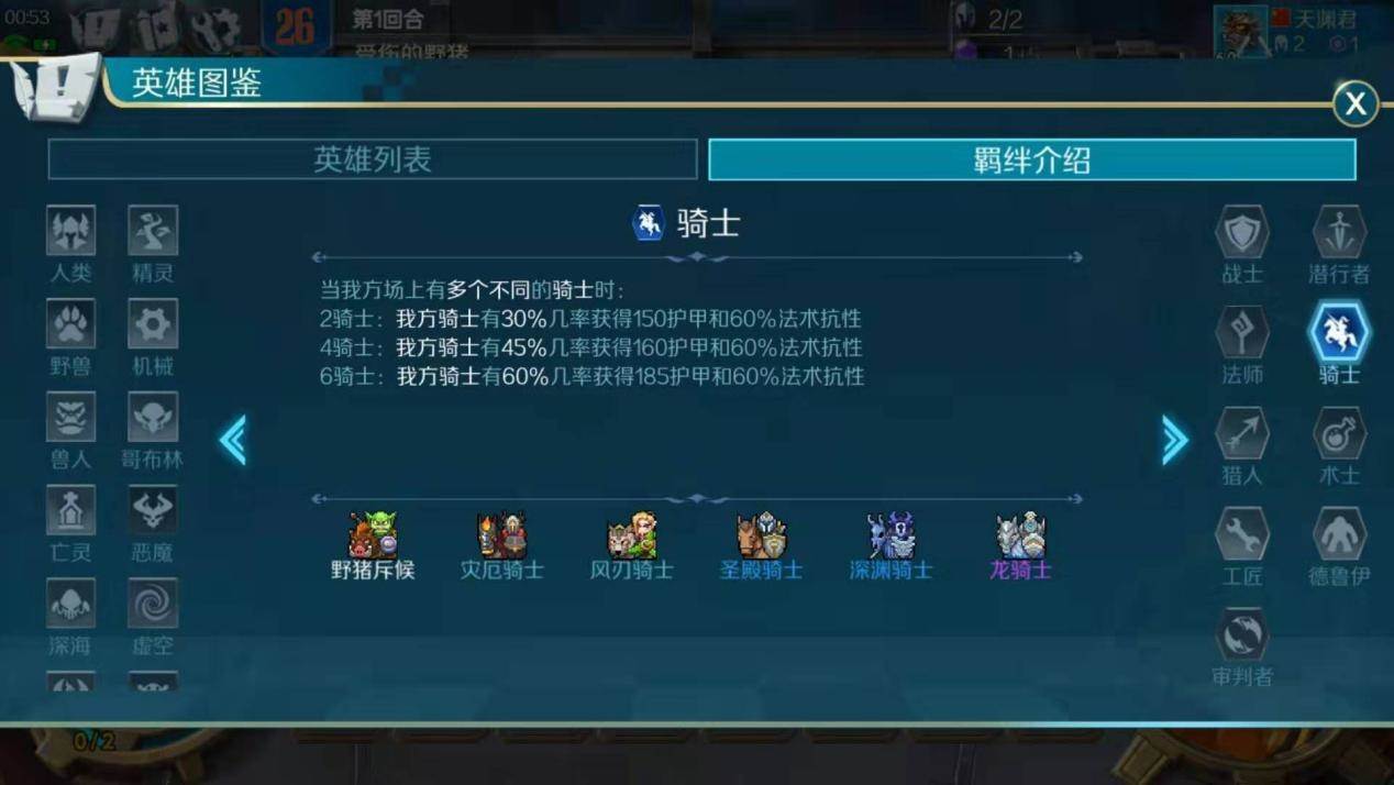 2骑士:我方骑士有30%几率获得150点护甲和60%法术抗性。
