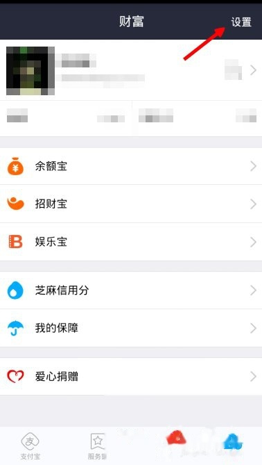 进入个人财富页面,点击右上角的设置按钮