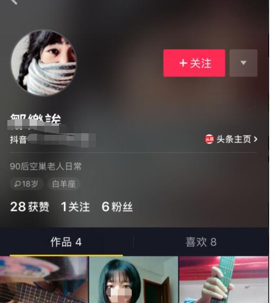 还可以点击头像,查看个人主页,在这里也可以点击【关注】。
