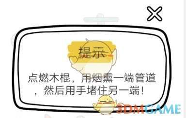 这一关比较难,答案我们也知道,就是先点燃木棍,然后去水管那熏老鼠,然后手指堵住另一边