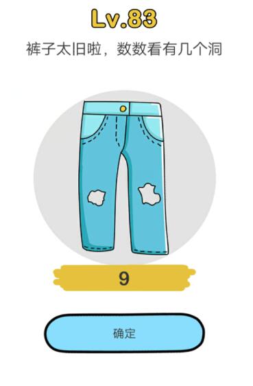先来数数裤子本身的洞,腰那里一个,兜兜两个,裤腿两个,在加上裤子中间破的洞,这里一共是4个,加一起就是9个了!