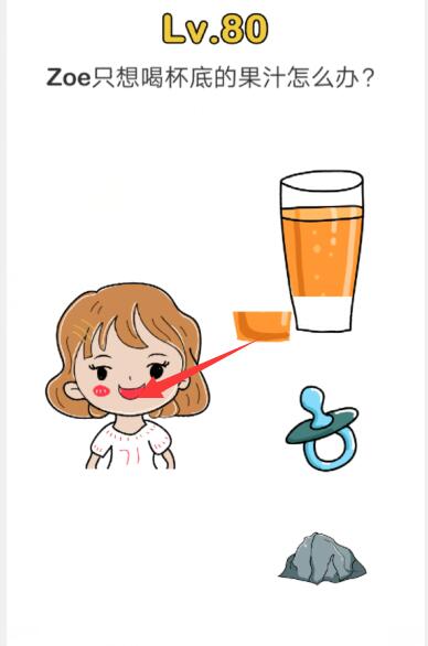 这一关并不难,果汁杯底部分是可以移动的,将之移动到Zoe嘴边即可!
