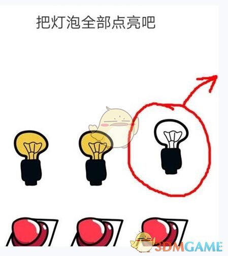 正确答案:这一关第三盏灯泡是点不亮的,所以把第三只灯泡移出屏幕,点亮其他两盏灯即可