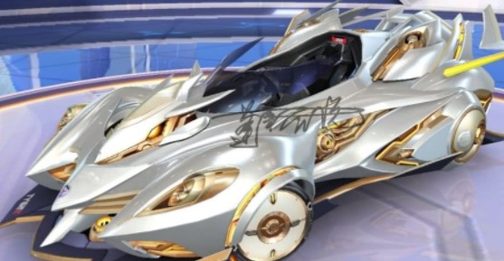 赛车整体是由白色和金色组神的,就连车轱辘设计的也是相当的到位,看上去是非常帅气的,车头是尖刺型的,这样的车头是可以有效的在比赛中减少一定的阻力的,是属于流线型的设计,可以帮助我们提升一定的速度。