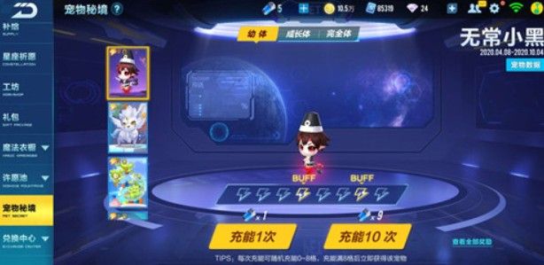 无常小黑是需要通过宠物能源充能来获得的,每次充能后都是可以增加闪电格子的,充能次数越多获得的概率是会降低的,具体的概率第一格47%、第二格45.5%、第三格13%、第四格7.5%、第五格4%、第六格1.5%、第七格1%、第八格1%。