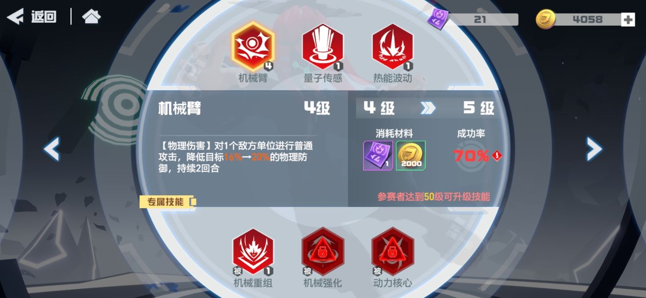玩家们平时加点可以选择特殊格,一技能对于雷德来说非常重要,玩家们抗完伤害后可以跑开,当然也能在后排出现最危险的情况时使用。