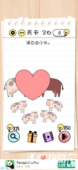 谜题急转弯Brain Test是一款充满趣味和挑战性的脑洞游戏,这里有许多谁也说不出答案的脑筋急转弯,放大你的脑洞,不要局限在题目的问题,也行文字和图片就是陷阱,那么谜题急转弯Brain Test第26关怎么通关?快和小编一起来看看这篇请点击小牛通关答案一览,相信对大家有所帮助。