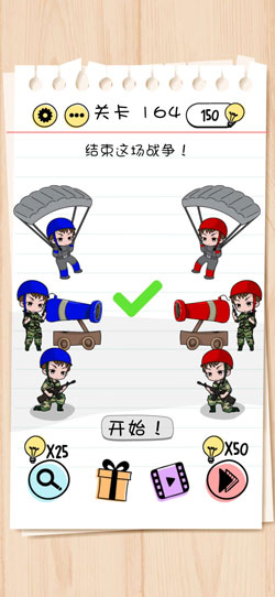 谜题急转弯Brain Test是一款充满趣味和挑战性的脑洞游戏,这里有许多谁也说不出答案的脑筋急转弯,放大你的脑洞,不要局限在题目的问题,也行文字和图片就是陷阱,那么谜题急转弯Brain Test第164关怎么通关?快来看看这篇结束这场战争通关答案一览,相信大家一定会有新的认识。