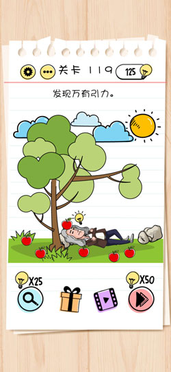 谜题急转弯Brain Test是一款充满趣味和挑战性的脑洞游戏,这里有许多谁也说不出答案的脑筋急转弯,放大你的脑洞,不要局限在题目的问题,也行文字和图片就是陷阱,那么谜题急转弯Brain Test第119关怎么通关?快和小编一起来看看这篇发现万有引力通关答案一览,相信能帮助大家了解。