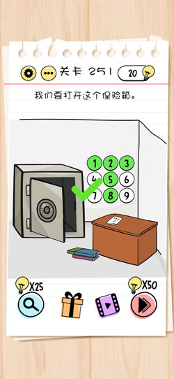 谜题急转弯Brain Test是一款充满趣味和挑战性的脑洞游戏,这里有许多谁也说不出答案的脑筋急转弯,放大你的脑洞,不要局限在题目的问题,也行文字和图片就是陷阱,那么谜题急转弯Brain Test第251关怎么通关?快和小编一起来看看这篇我们要打开这个保险箱通关答案一览,相信对大家有所帮助。