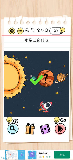 谜题急转弯Brain Test是一款充满趣味和挑战性的脑洞游戏,这里有许多谁也说不出答案的脑筋急转弯,放大你的脑洞,不要局限在题目的问题,也行文字和图片就是陷阱,那么谜题急转弯Brain Test第248关怎么通关?今天小编就给大家带来木星上有什么通关答案一览,相信看完很多小伙伴都忍不住要跃跃欲试了。