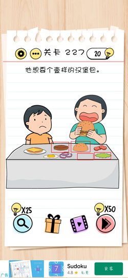 谜题急转弯Brain Test是一款充满趣味和挑战性的脑洞游戏,这里有许多谁也说不出答案的脑筋急转弯,放大你的脑洞,不要局限在题目的问题,也行文字和图片就是陷阱,那么谜题急转弯Brain Test第227关怎么通关?一起来看看这篇他想要壹汉堡包通关答案一览,熟悉下吧。