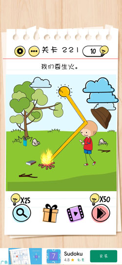 谜题急转弯Brain Test是一款充满趣味和挑战性的脑洞游戏,这里有许多谁也说不出答案的脑筋急转弯,放大你的脑洞,不要局限在题目的问题,也行文字和图片就是陷阱,那么谜题急转弯Brain Test第221关怎么通关?这里小编就给大家带来我们要生火通关答案一览,希望能作为玩家的参考。
